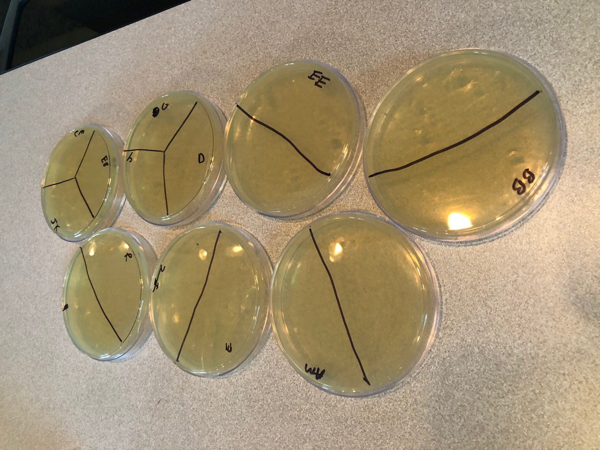 We also took swab samples from around the room to grow on our nutrient agar plates (bacteria food, see picture below).