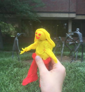 With these persuasive tools at hand, we dove into working on our own proposals for transforming the campus with our sculpture project. Each student or group wrote a letter to Vanderbilt administration using the techniques we’d discussed. After that, we tried to plug our sculpture projects into their location on campus using some trick perspective photography. After all, we’d learned in our analysis of the anti-graffiti ads, images are powerful persuasive tools. With our words and photos, how could Vanderbilt administration resist?