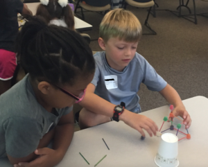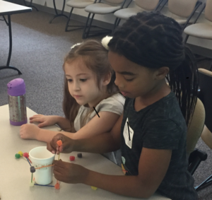 After learning a few vocabulary words, students worked in teams to try and build towers made of spice drops and toothpicks that could support a book. This was a great first lesson in persistence! Why is it important to never give up?