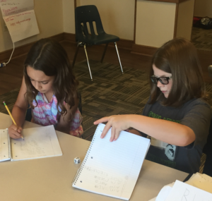 This morning, students worked on a creative writing exercise with “PoetryCubes” (adapted from the wonderful game, StoryCubes.) Students were each given a special “image-dice,” and asked to roll their dice, choose a category on the board (each category included one of the five senses, and a literary technique we’ve discussed thus far as a class, i.e. alliteration, similie/metaphor, etc.) and write one line based off their rolled image using these techniques and a sensory detail. This generative writing exercise seemed to infuse a lot of inspiration for the students, many of whom resumed working on their PoetryCube poems throughout the day.