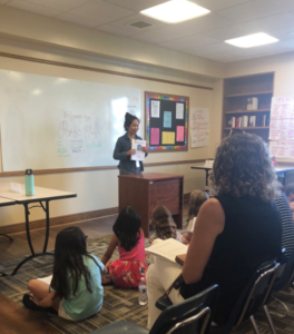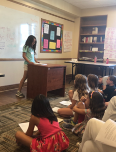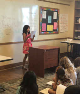 After sharing our erasure poem versions of “Guitar” with one another, we moved into the next round of the day — a Q&A session with Miss Carlina and Miss Cristina, the instructor and TA! Since Miss Cristina and I both already have or are attaining our MFAs and have experience with publishing in the writing world, we each demonstrated a tiny reading for the class, sharing 3 minutes of our own personal work. We then invited the students to think about questions they may have for the real writing life, as practiced by two current writers. Students were invited to ask us anything about the publishing process, the writing itself, ideas, writing history, background, advice, etc.