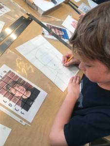 What a fun SAVY math day! We have already begun synthesizing our new understanding of fractions! On our walk to The Little Art House, we noticed many examples of fractions, proportions and math in the community. Emma Bradford, one of the founders of The Little House, guided us through creating grids, doubling proportions and noticing details. Students were very engaged in sharing observations about the effects of Rule of Thirds, composition, orientation [portrait, landscape], balance v. centered, and value of color density. We began our self-portraits. Emma was fabulously encouraging and informative as she taught us all. If you’d like to learn more about The Little Art House, here’s their website: https://www.littlearthousenashville.com/