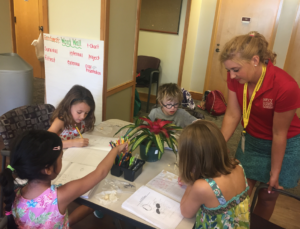 Now that we didn’t feel so green with our understanding of recognizing systems, we expanded our learning to investigating another type of system that applies to plants, terrariums! Each budding botanist created their own terrarium step by step, and they were so excited to see the bundled up roots, as well as how to learn how to trim off long branches. In fact, your botanist should be bringing home their trimmed branches in hopes of making new plants from the shoots! This would be a fun research project at home, learning how to create new plants from branches that have been trimmed from the plant. Be on the lookout for these cuttings in backpacks!