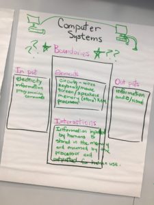 Students took part in a discussion about computer systems. All systems have boundaries, elements, inputs, outputs, and interactions. Systems can be functional and dysfunctional. Inputs from one system can come from outputs of another through interactions. Within computer systems, humans can input information through keyboards that is stored in memory and processed for informational outputs that benefit humans in work and play. How are modern devices such as iPhones blurring the lines of humans and computers in their interactions. Do we say please to our computers when we give them audio commands? Ha! Do we forget in using social media we are interacting with other vulnerable humans? What is digital citizenship, and what are the implications of not observing this issue? Are devices helping humans to collaborate? In response to this discussion, we learned guidelines and practiced pair programming. Two heads are better than one, especially when they code together.