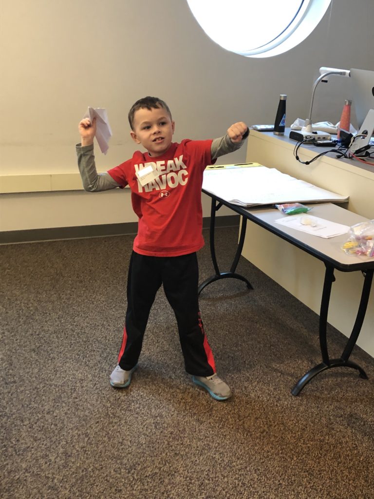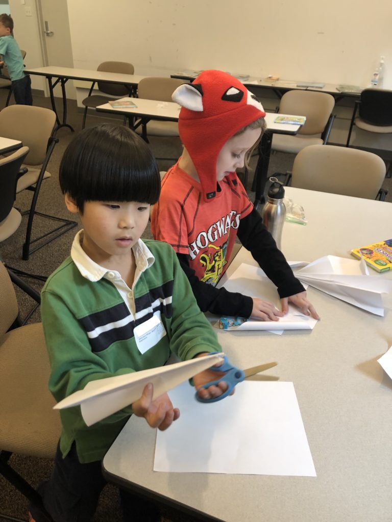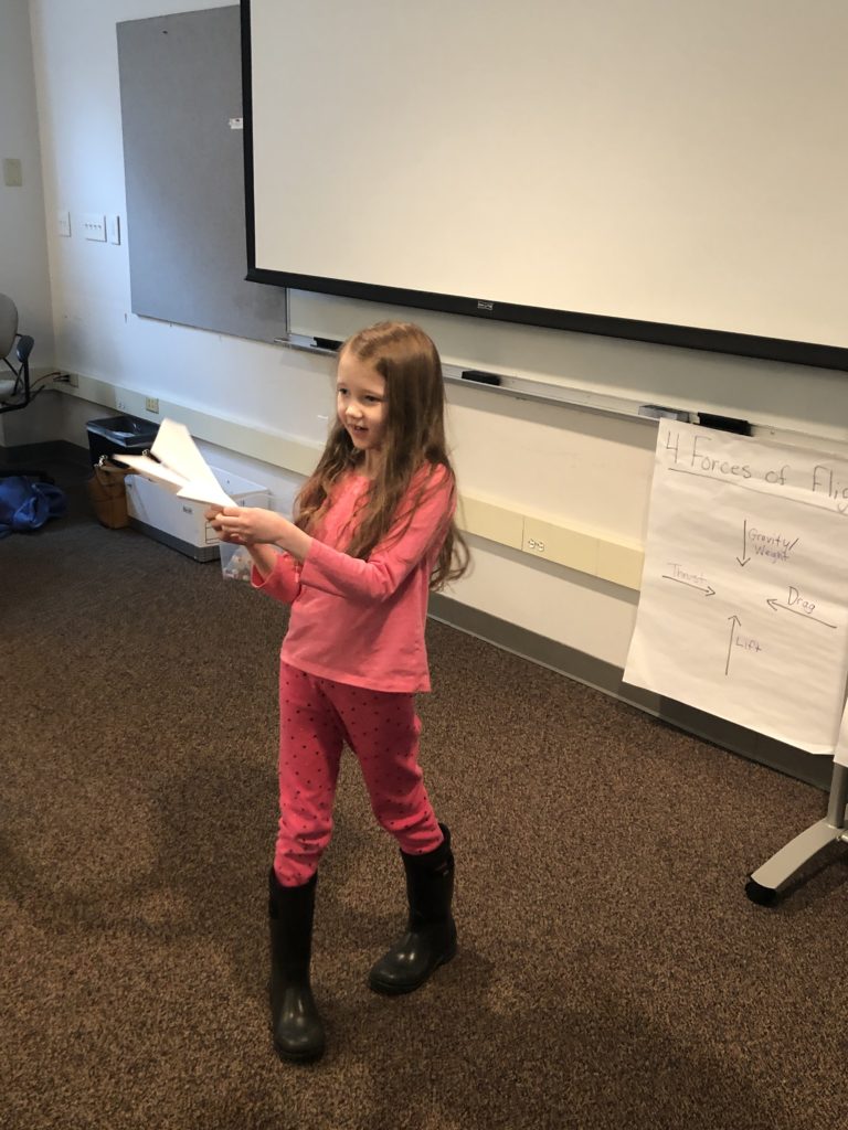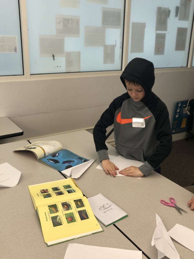 At the end of class, the students tried out more paper airplanes. This time I challenged them to apply something that they had learned about bird flight or insect flight to the design of their paper airplane. Students cut holes in the airplane to make it lighter. They cut slits to mimic feathers. They folded the wings a bit differently. Some tried to find the most aerodynamic shape. It was quite busy and exciting as students launched paper airplanes all over the classroom, but we were able to talk and listen to students ideas about why they were trying a particular feature and what they hoped it would accomplish.