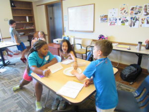 Day three was full of challenge and fun! Our theme for the day was the scientific method. We began the day reviewing yesterday’s lessons; focusing on the difference between behavioral versus verbal strategies for measuring the mind. After our review, our researchers were FINALLY introduced to their projects – creating their own experiments! They were all very excited and immediately began brainstorming ideas.