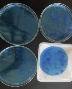 Today in Common and Practical Chemistry we started the day by using chromatography to separate the red and blue dyes in grape Kool-Aid. It turns out the more polar 5% alcohol dissolves the red dye and the less polar 25% alcohol dissolves the blue dye. Then we talked about atoms and ions and learned how to differentiate between ionic and covalent compounds. After lunch, campers observed how sugar, a covalent compound, caramelizes and then completely decomposes when put over a flame while salt, an ionic compound, is completely unchanged by the heat of an alcohol flame. We then learned about electrolytes and tested salt water, sugar water, distilled water and a variety of drinks to see if they were electrolytes and conducted electricity. Finally, we talked about hydrates and observed the brilliant blue color of a hydrate disappear when heated and reappear when water is added. I can’t wait to do more chemistry tomorrow!