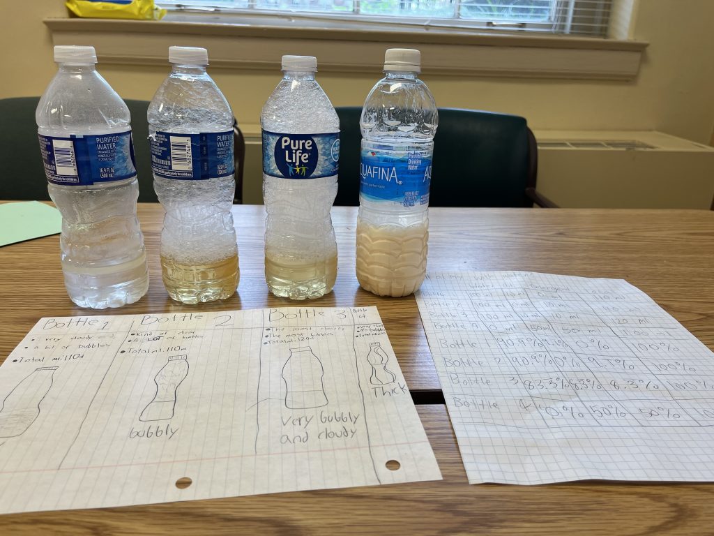 After lunch, students conducted an experiment to learn how oil interacts with pure water compared to water containing different contaminants. We learned that in pure water, the oil will separate and form a layer on top of the water. But when other contaminants like detergent have polluted the water, oil can mix with those contaminants and make it much more difficult to clean up.