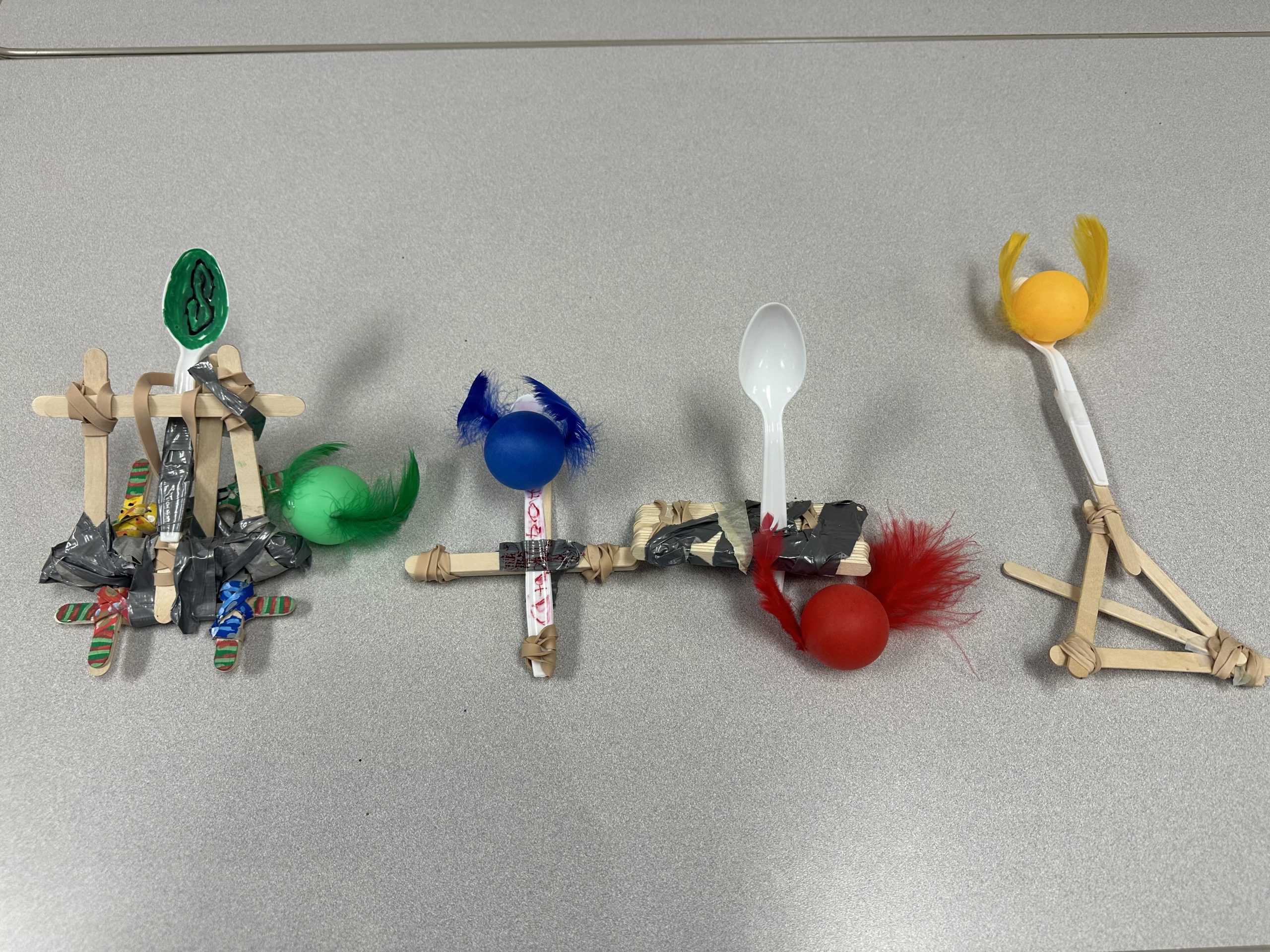 After Potions Class, students began their first Flying Class! There, we learned about Newton’s laws of motion. We discussed the principles of projectile motion, air resistance, and gravity. After learning about the forces involved in flying, students worked together with their housemates and built a catapult to launch their Snitch! I was impressed with the creativity and reasoning skills they displayed in their design and modification processes. Gryffindor won our launch competition, but every house built a successful catapult.