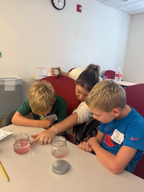 The class conducted a lab experiment extracting DNA from a strawberry. The students were amazed by the visible strands of DNA they were able to pull out! This experiment is simple enough that they might want to recreate it at home with you. Students were using the scientific method, some for the very first time! As forensic scientists, we will continue to use the scientific method in experiments moving forward.