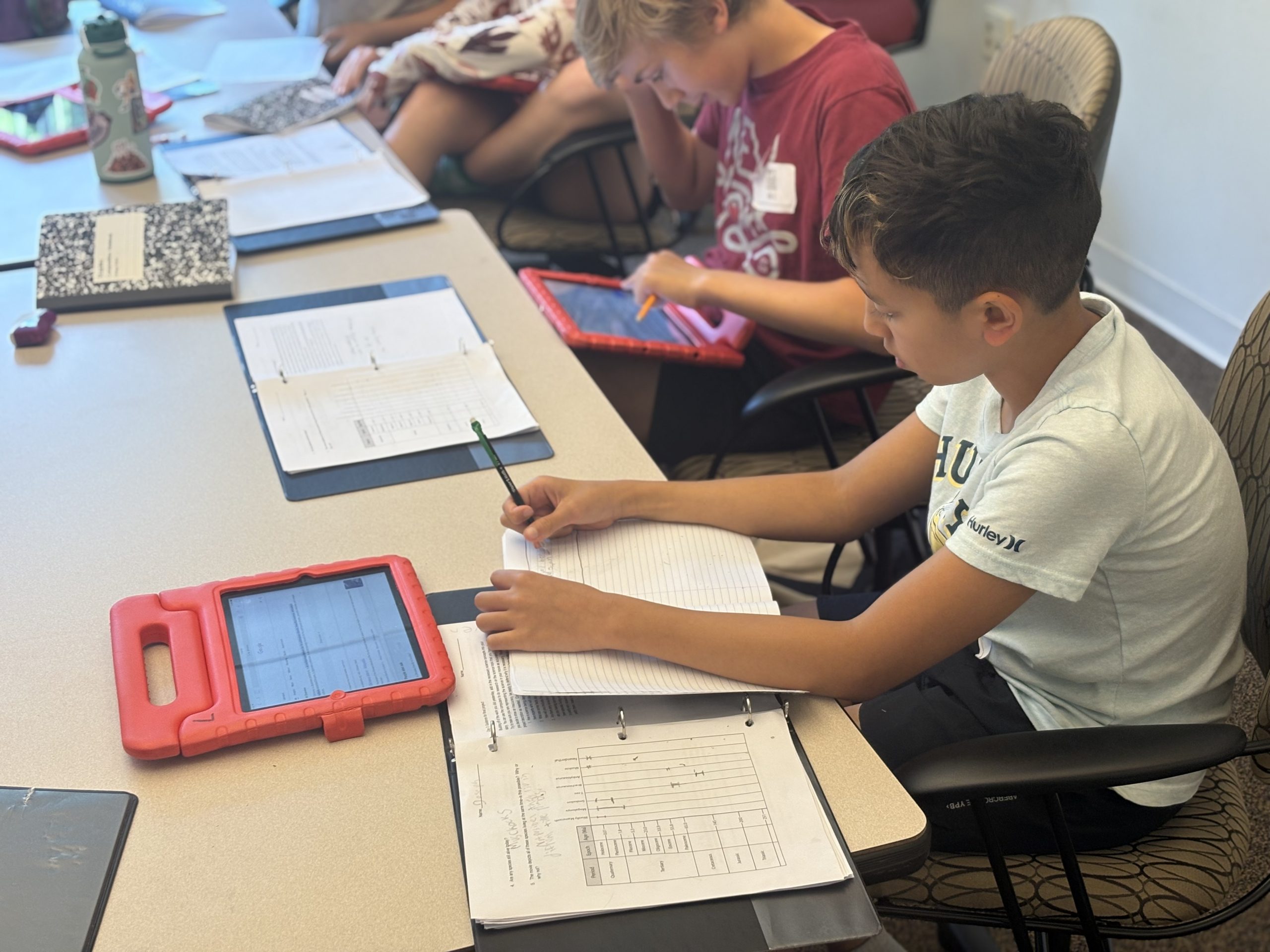 Good afternoon, SAVY Parents! We are more than halfway through our session! Today was focused on Earth’s history and the evolution of life. We went through all 4.5 billion years of Earth’s history together and then played a game using the names of the geologic time periods. We watched clips from two Ice Age movies and Jurassic Park before we had some time in the morning to work on their final projects. The students were able to prepare for the final project research in the afternoon when they had access to iPads and could look up facts online to help ensure that their movie was as accurate as possible.