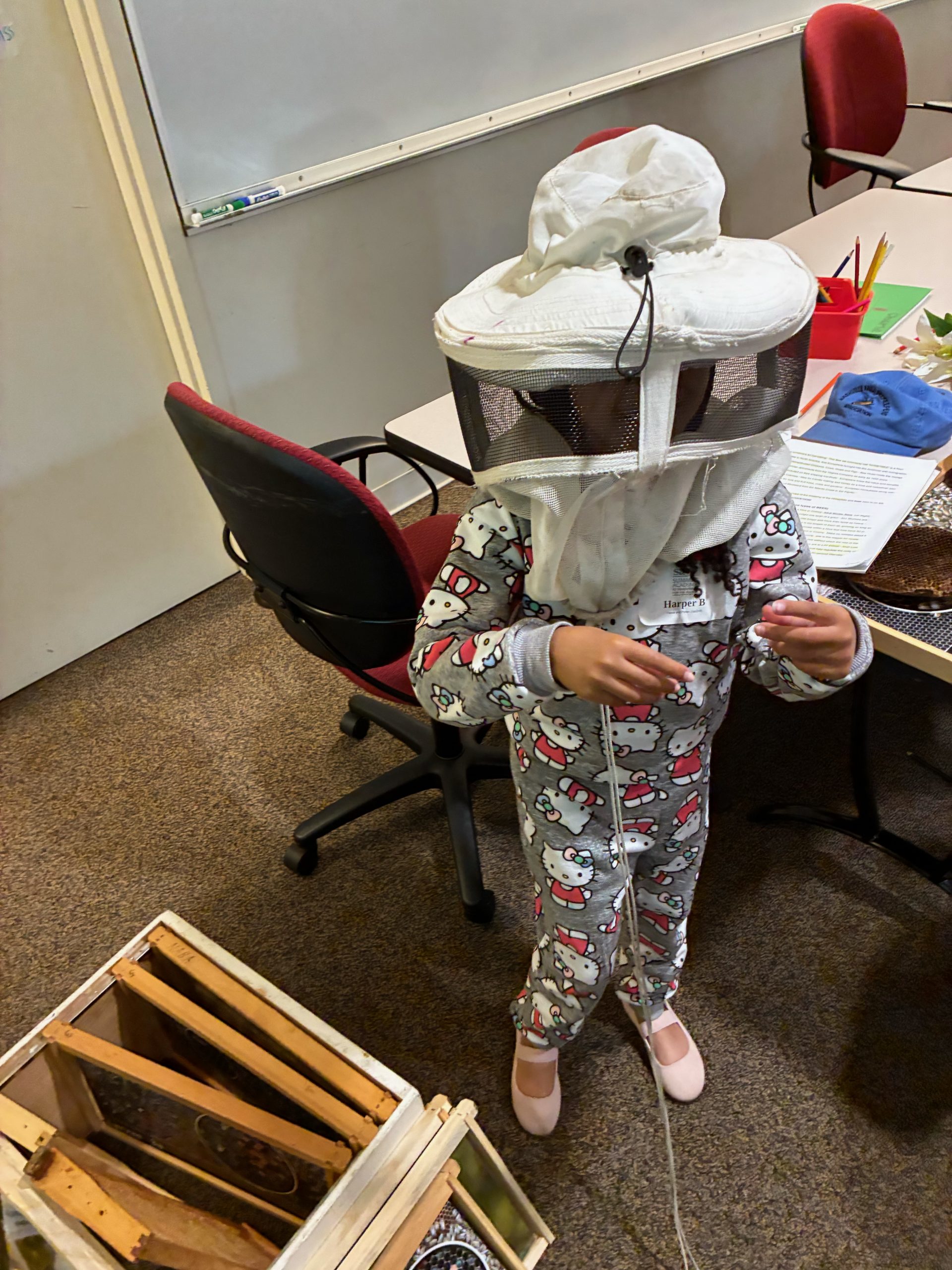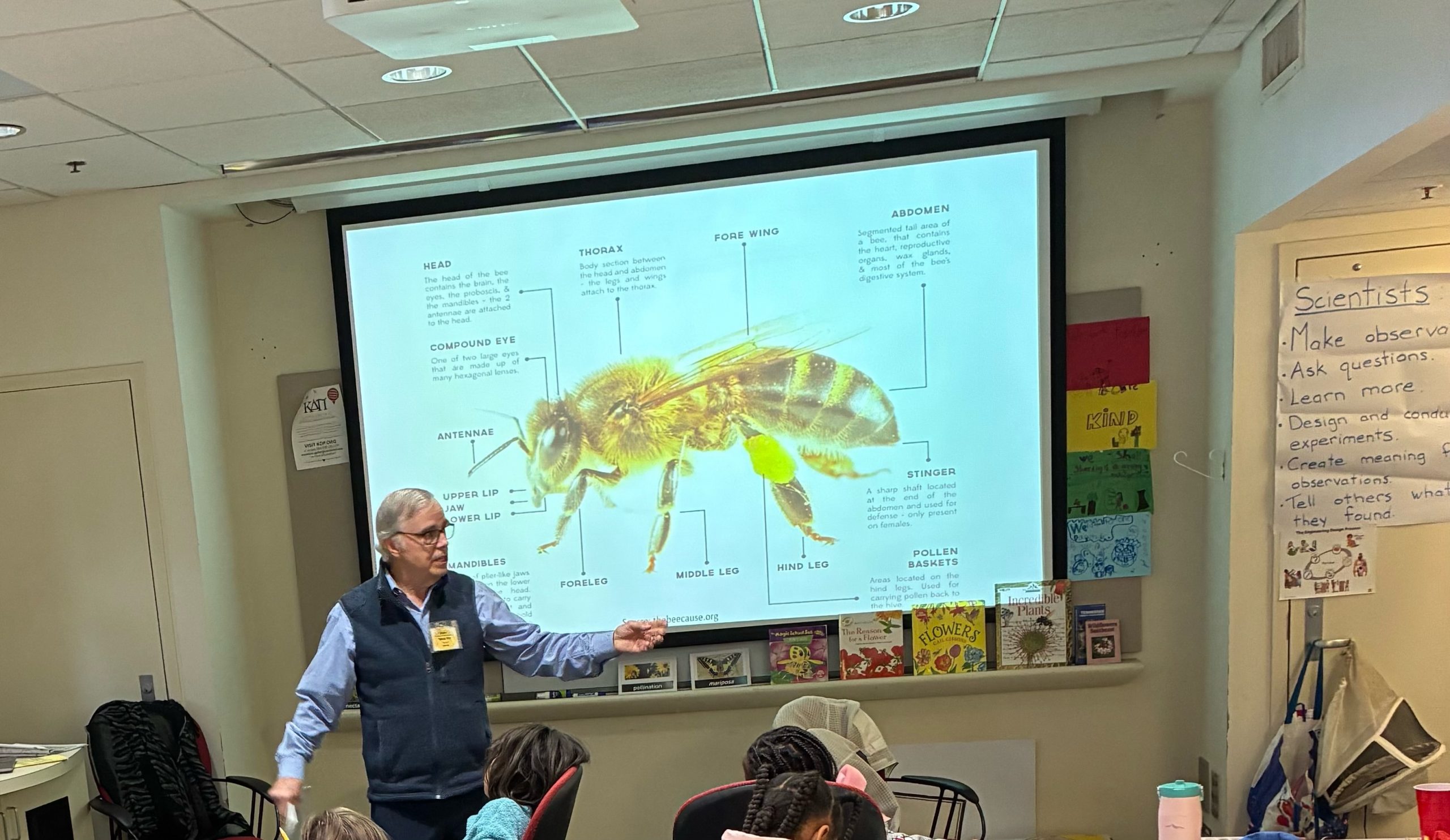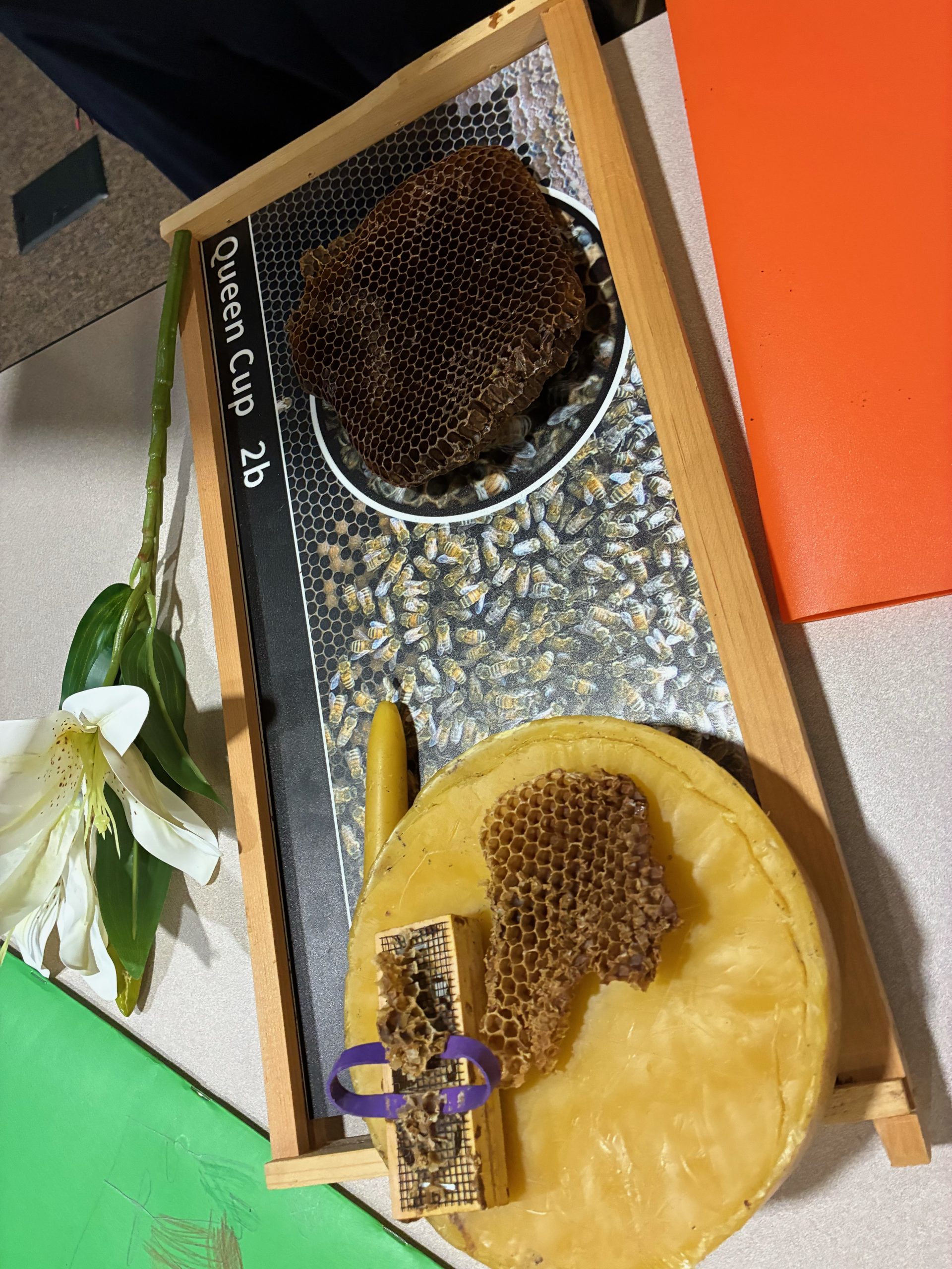 We had a demonstration by a beekeeper from the Beekeepers Association of Tennessee. Students handled beeswax, honeycomb, and even had a chance to try on beekeepers’ outfits. Mr. Foy, the beekeeper, taught a lot about the importance of bees and how they not only impact our gardens, but also crops through pollination.